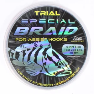 - L’AQS Trial Special Braid è un trecciato di altissima qualità, studiato per la realizzazione di assist hook destinati alle tecniche più tecniche come Slow Pitch, Slow Jigging, Inchiku e tutte le montature che richiedono la massima resistenza e precisione.